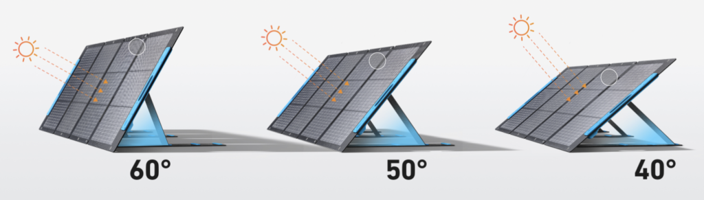 The solar panel comes with a sturdy stand with which you can determine the desired angle to achieve optimal efficiency