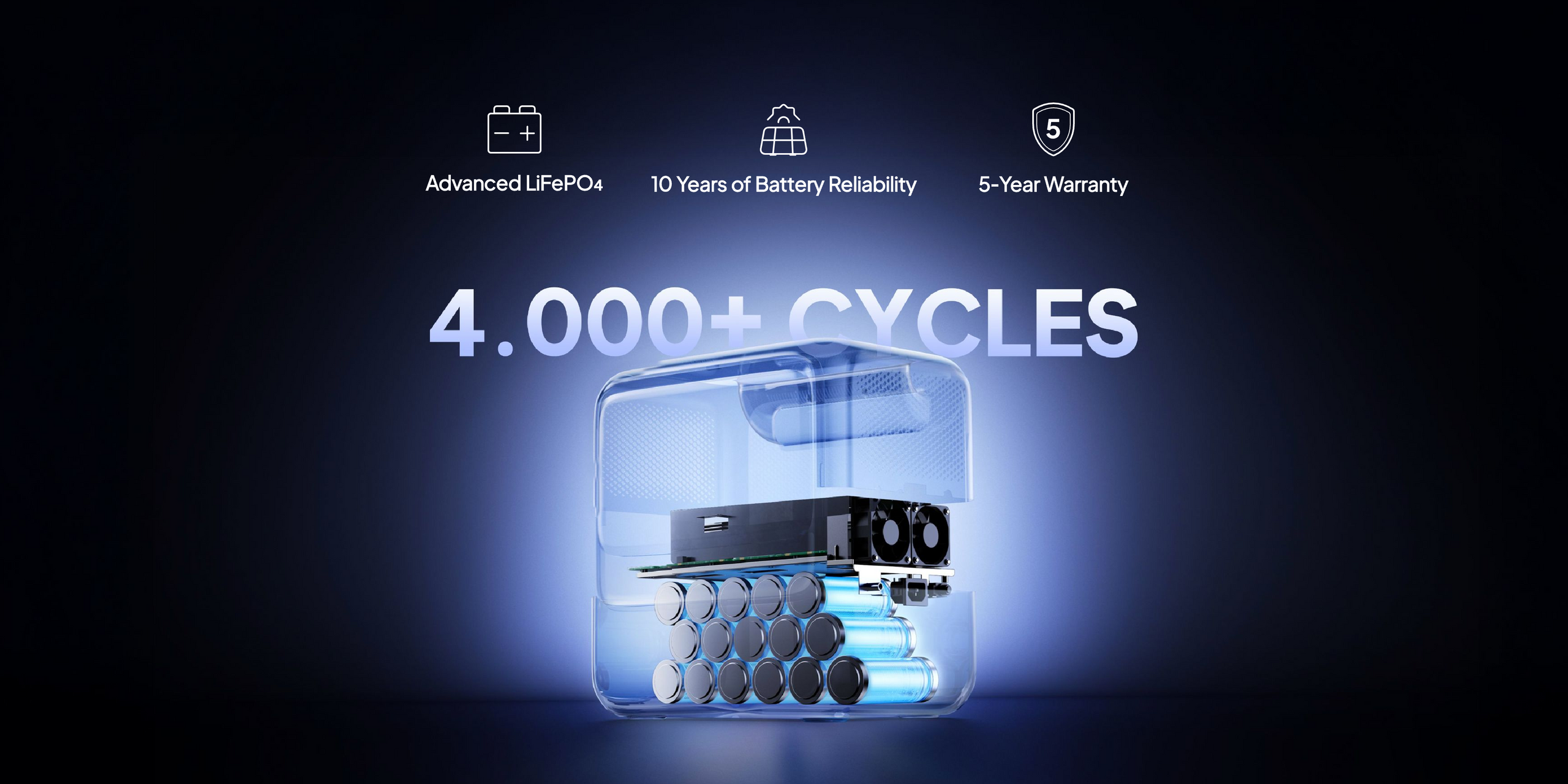 Duurzame batterijtechnologie: LiFePO₄-cellen met meer dan 4.000 laadcycli zorgen voor jarenlang betrouwbaar gebruik zonder capaciteitsverlies.